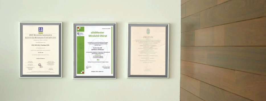 Eddigi építőipari munkáink után számos elismerést, tanúsítványt és díjat kaptunk, melyekre büszkék vagyünk. Társaságunk elkötelezett a minőségbiztosítás terén. Rendelkezünk az ISO 9001:2008 szabvány szerinti minősítéssel.